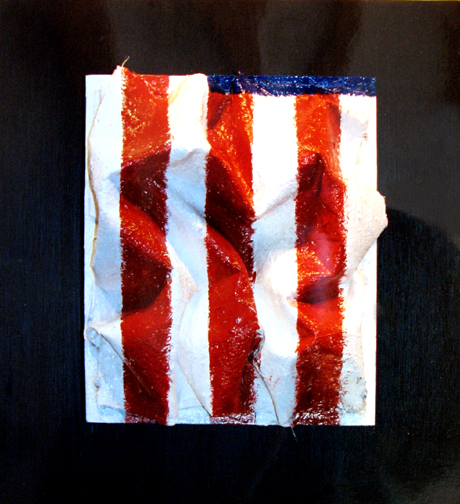 O Beautiful///////(1993) oil on crumpled canvas over box. 22 x 22 x 8 inches 55 x 55 x 20 centimeters.