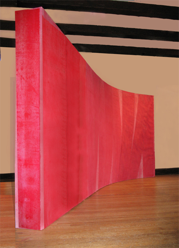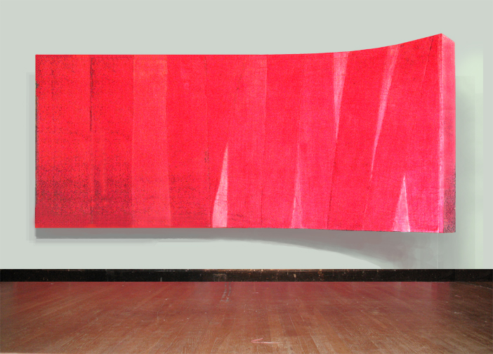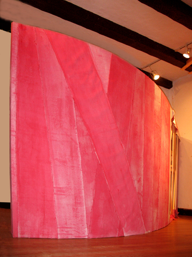 Canvas strips are stretched on a (appropriately curved in this case) wood