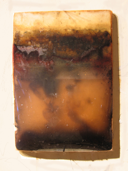 A brown dye was mixed with the water to color it uniformely. The work was then sealed. This was 2001. This photo was taken ten years later.